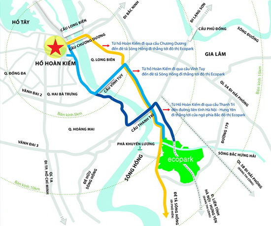Nằm ở thượng lưu sông Bắc Hưng Hải và được kết nối với cầu Thanh Trì, đường vành đai 3, cầu Vĩnh Tuy, cầu Chương Dương, đường 5B, cách quốc lộ 1A xuyên Bắc Nam 4km, vị trí của Ecopark rất thuận lợi cho giao thương.